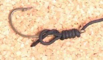 Этот узел выглядит надежно, но, на самом деле, он гораздо слабее, чем кажется на первый взгляд. Поэтому в поплавочной удочке выгоднее применять крючки с лопаточками. В первую очередь, это касается поплавочных оснасток, маленьких крючков и тоненьких лесок. Если мы будем иметь в виду карповые крючки, то, конечно, крючки с колечком там имеют доминирующее положение, потому что их можно привязать различными способами за колечко. Там уже не столь важно, чтобы крючок располагался строго по оси лески.