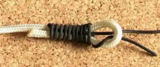 Данный узел применяется для соединения лесок с большой разницей в диаметре. Например, это толстая
