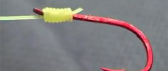 Сейчас покажем узел, которым хорошо привязывается крючок с лопаточкой, этот узел очень надежный. Надо
